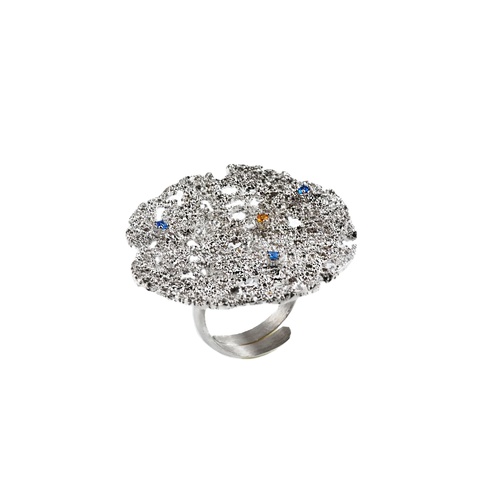 แหวนเงินสไตล์อิตาลีที่เลียนแบบไม่ได้925รูปเรขาคณิตของหลุมอุกกาบาตเพทายทันสมัยชุดเครื่องประดับชั้นดีชุบเงินสำหรับทุกวัน